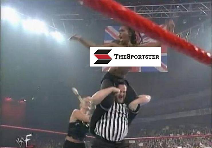 During the Attitude Era the most famous wardrobe mishap happened during a tag matcg. After losing a mixed tag match when Sable picked up the pinfall victory Jacqueline became enraged and attacked referee Tim White. Jacqueline moore wardrobe malfunction.